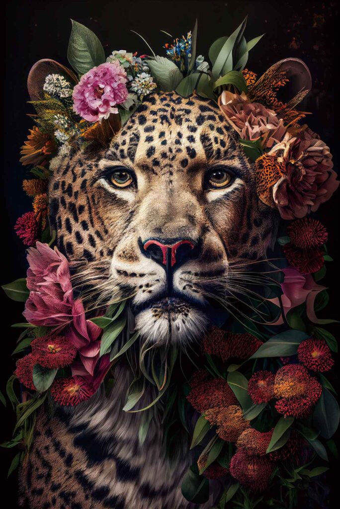 Glasschilderij Blooming Leopard 120x80cm