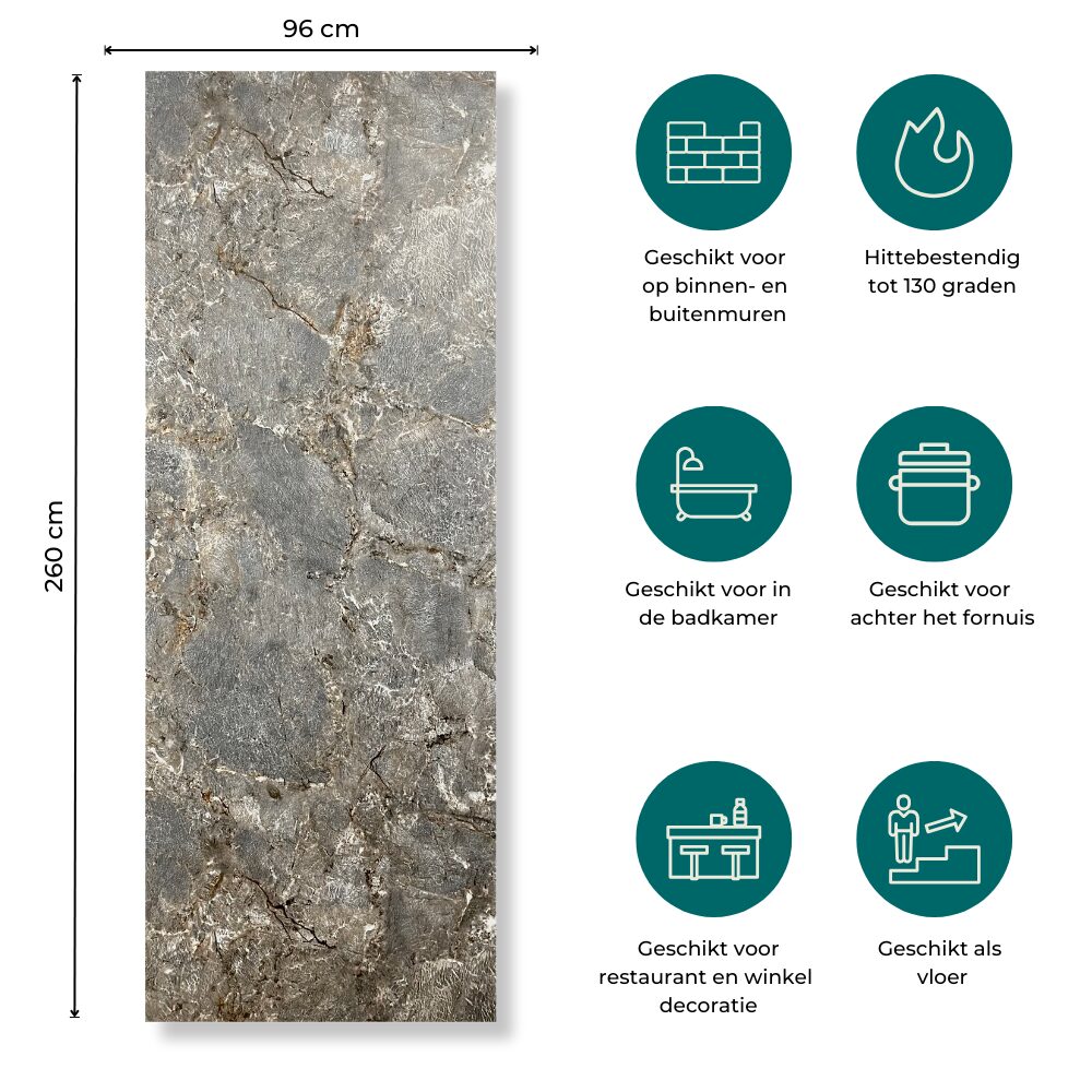 Dit wandpaneel is zéér makkelijk op maat te maken met een stanleymes en kan met montagelijm, direct over bestaande tegels of grove muren geplaatst worden. De platen zijn 100% waterbestendig en dat maakt ze uniek om in de badkamer of in de douche te gebruiken.